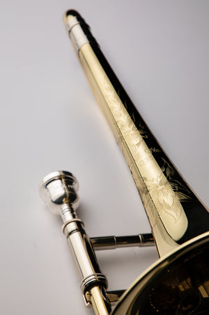 S.E. Shires Alto trombones feature a .485-inch bore, or .485/.495-inch dual-bore slide and a 7-inch bell, available in a full range of options and alloys. The bell taper is designed for a true and flexible alto voice, with focused clarity for the most delicate repertoire, but enough breadth of sound for a large orchestra. All S.E. Shires alto trombones come with a tuning mechanism incorporated into the handslide. This allows the bell to maintain a continuous taper, giving the instrument the same superior intonation found on all S.E. Shires instruments. The tuning-in-slide mechanism is light, secure, and easy to use. Particular attention has been given to the length of the handslide, allowing full use of all seven positions.