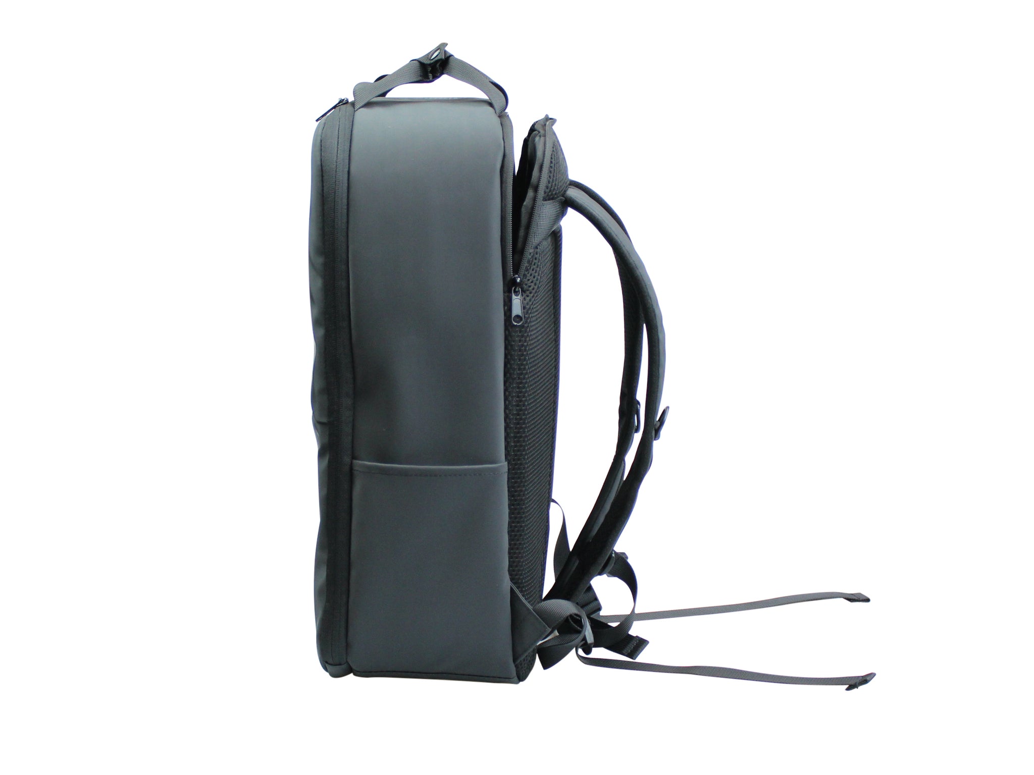 The surface of the bag is made of polyester canvas with a matte water-repellent coating, giving it a taut and silky feel.